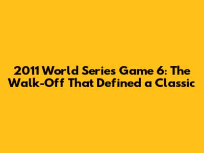 - A Game for the Ages: Game 6 of the 2011 World Series is a testament to the beauty and drama of baseball. It's a game that will be talked about for generations.