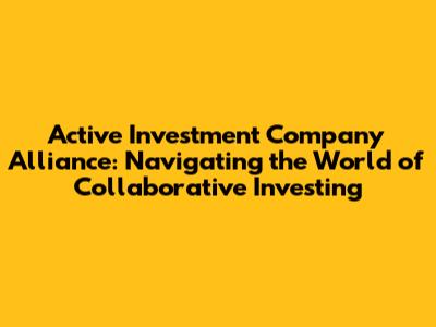 Active Investment Alliances: What You Need To Know