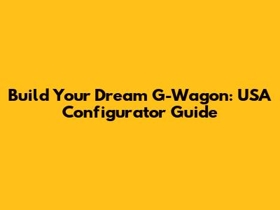 Build Your Dream G-Wagon: USA Configurator Guide