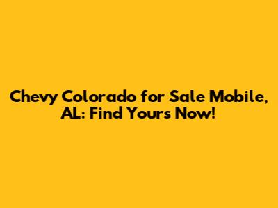 Hey guys! Are you on the hunt for a Chevy Colorado for sale in Mobile, AL? You've landed in the right spot! Finding the perfect truck can be a real game-changer, whether you need it for work, play, or just cruising around town. Let’s dive into everything you need to know to snag the best deal on a Colorado in Mobile. We'll cover where to look, what to consider, and how to make sure you're driving off the lot with a smile. So, buckle up and let's get started!