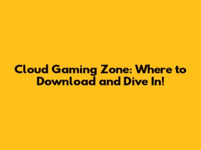 Cloud Gaming Zone: Where To Download And Dive In!
