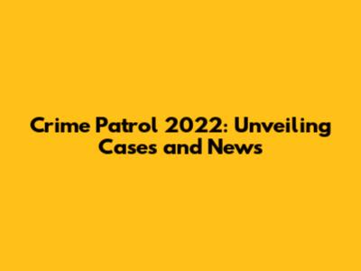 Crime Patrol 2022: Exploring Cases & News