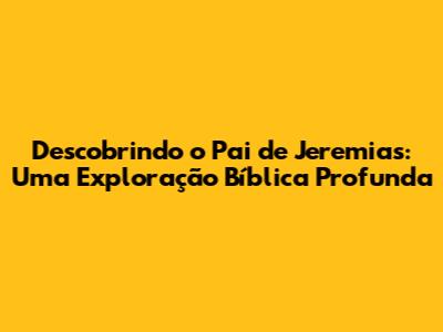 Descubra O Pai De Jeremias: Uma Jornada Bíblica