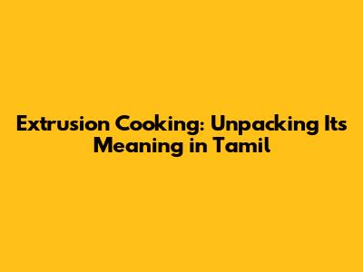Extrusion Cooking: Unpacking Its Meaning In Tamil