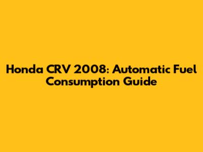 Honda CRV 2008: Automatic Fuel Consumption Guide