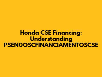 Honda CSE Financing: PSEN0OSCFINANCIAMENTOSCSE Explained