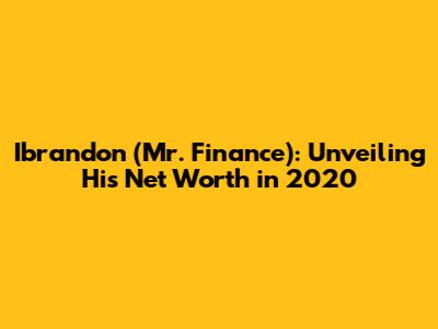 Ibrandon (Mr. Finance): Unveiling His Net Worth In 2020