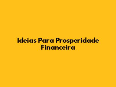 Ideias Para Prosperidade Financeira