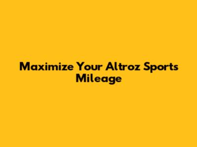 Maximize Your Altroz Sports Mileage