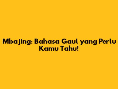 Apa Itu Mbajing?