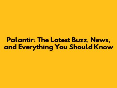 Palantir: Latest News, Updates & What You Need To Know