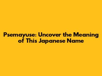 Psemayuse: Uncover The Meaning Of This Japanese Name