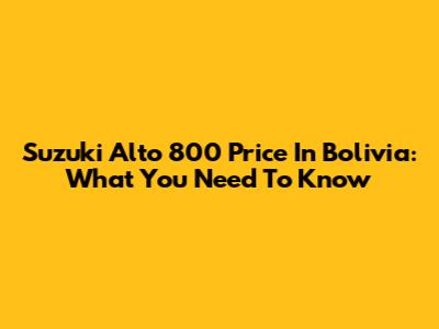 Suzuki Alto 800 Price In Bolivia: What You Need To Know