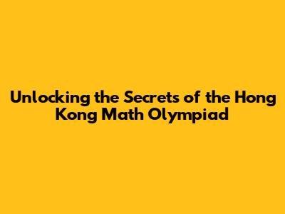 Unlocking The Secrets Of The Hong Kong Math Olympiad