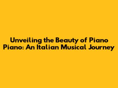 Unveiling The Beauty Of 'Piano Piano': An Italian Musical Journey