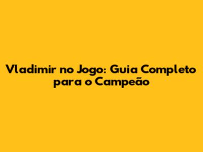 Vladimir No Jogo: Guia Completo Para O Campeão