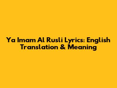 Ya Imam Al Rusli Lyrics: English Translation & Meaning